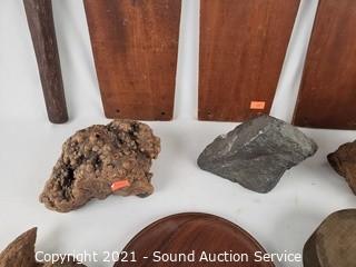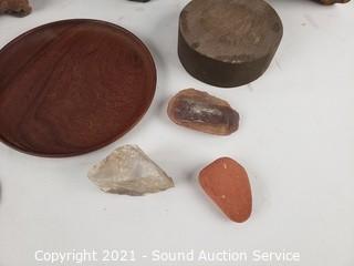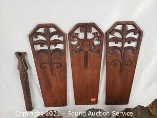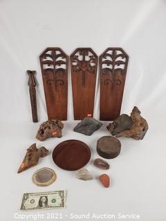 401 lots including; Unique Carved Teak Table w/Fringe Accents, Ornate Najarian Furniture Sofa's, Hutch, Tables, Dining Table, Some Nice Vintage & Antique Original Artwork/Paintings (Some from 18th, 19th Century), Artifact Pottery Pieces, Various Tribal & African Carved Wood Sculptures, Bronze Hindu & Other Sculptures, Signed Art Pottery Pieces, Fine Porcelain Sculptures, Vtg. Bang Olufsen Denmark Speakers, Turntable Receiver, Tribal Ceremonial Jewelry, Accessories, Handcrafted Silver Cuff Bracelet, Framed Imported Silver Bangles & Necklace & So Much More!!!