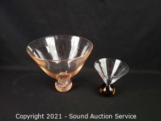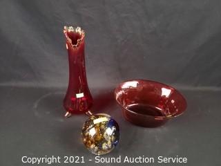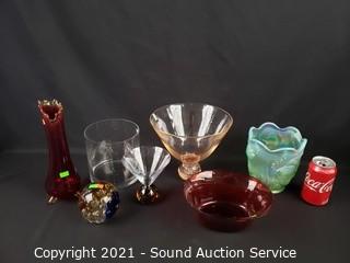 Lot #0199: Carnival & Art Glass Centerpiece Bowls & Vase