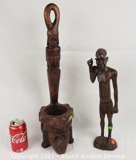 Lot #0209: Carved Wood African Ladle & Sculpture