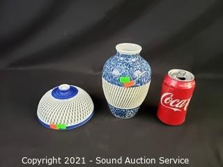 Lot #0289: Oriental Porcelain Lattice Vase & Lid
