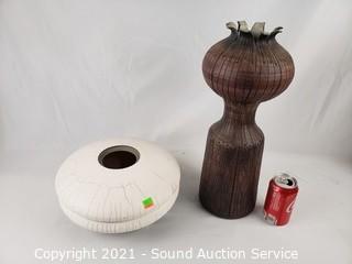 Lot #0192: Pair of Unique Signed Art Pottery Vases