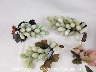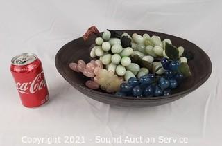 Lot #0206: Signed Raoh Pottery Center Bowl & Stone Grapes
