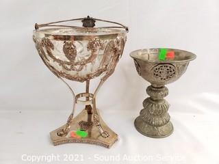 Lot #0322: Silverplate Compote, Vanity Tray & Thai Goblet