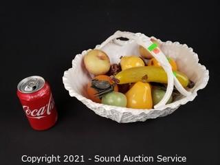 Lot #0203: Spode Lettuce Bowl w/Art Glass & Stone Fruit