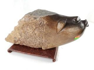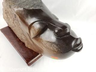 Lot #0131: Unique Signed Carved Stone African Bust Sculpture