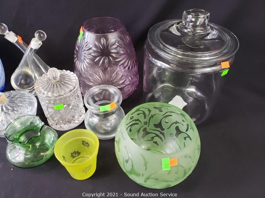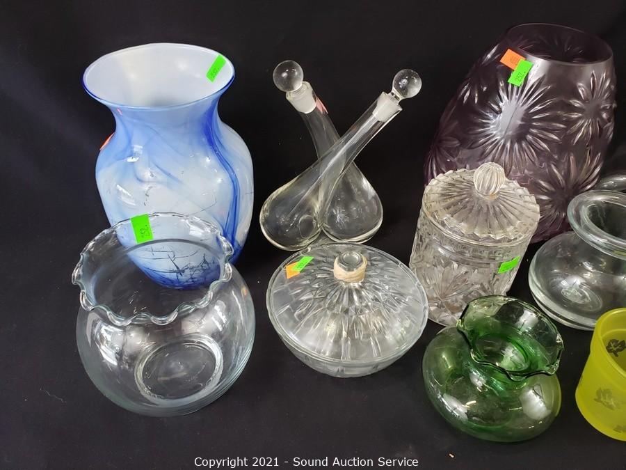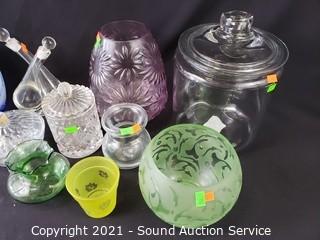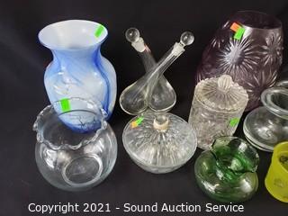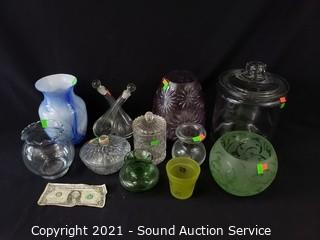 Lot #0252: 11pc Clear & Colored Glassware Decor