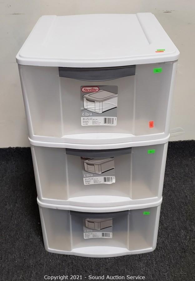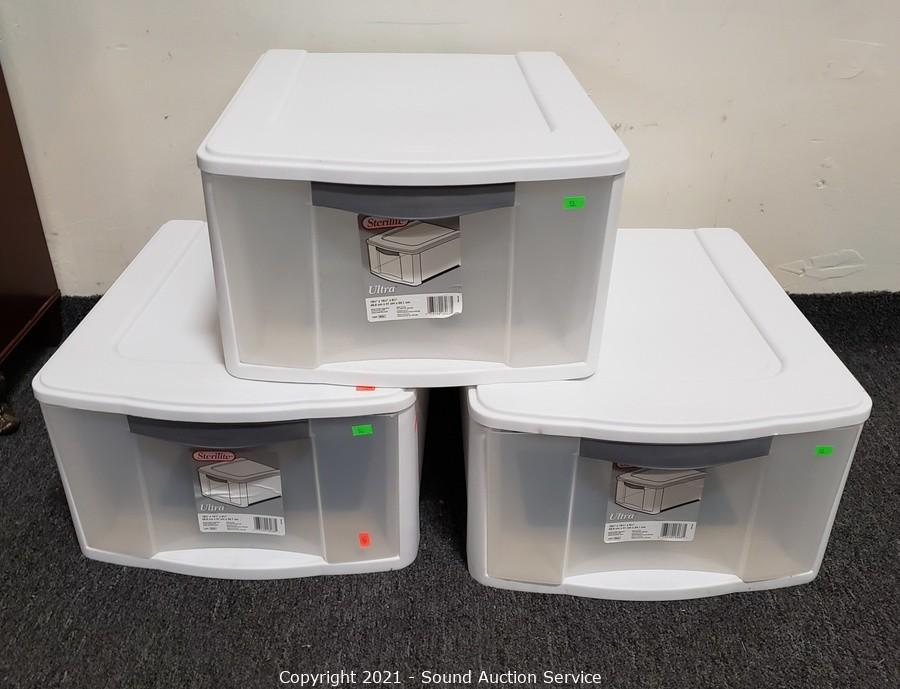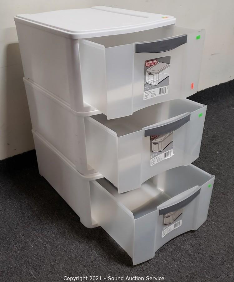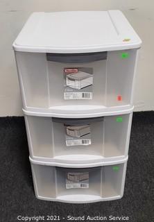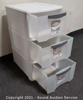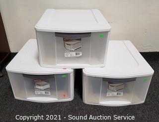 Lot #0053: 3 Sterilite Stackable Plastic Storage Drawers