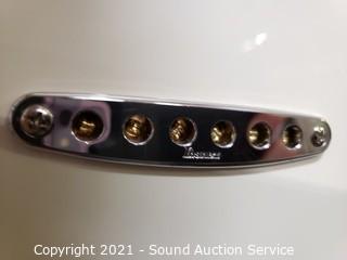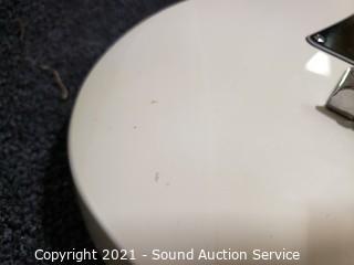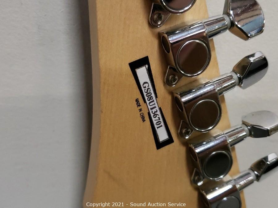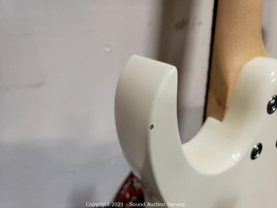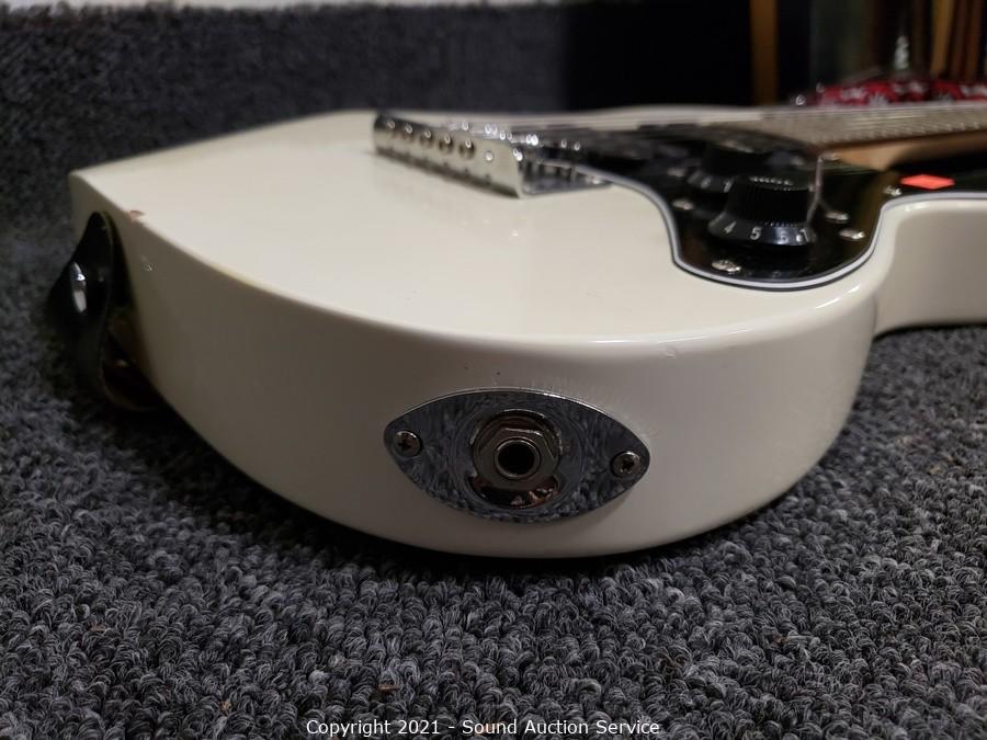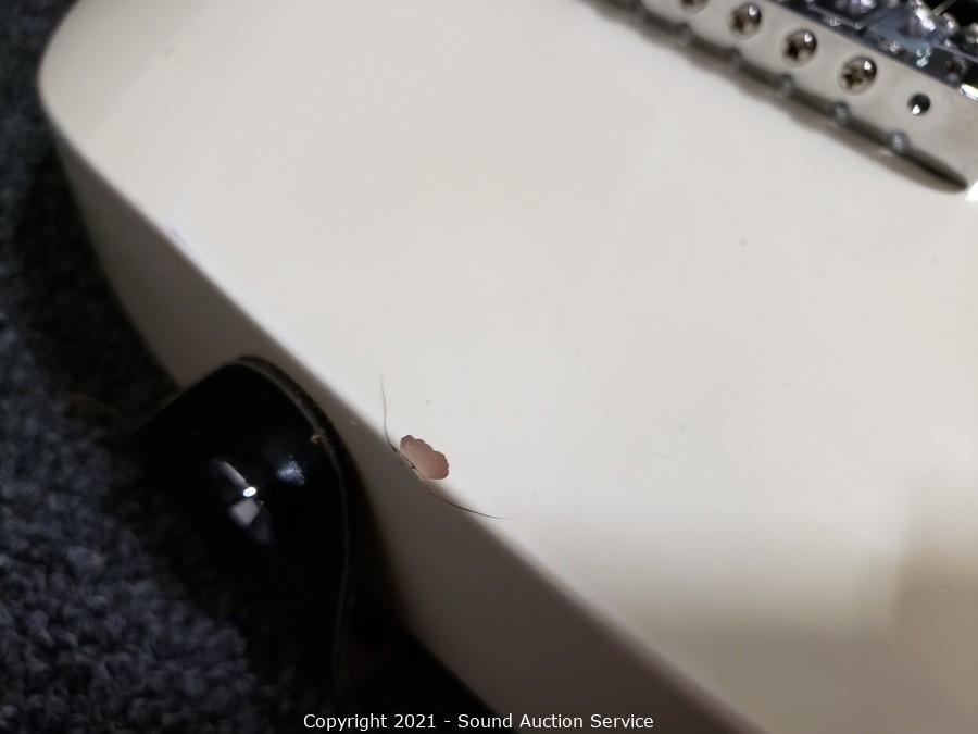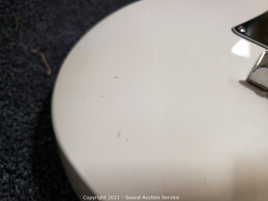Lot Details: Missing tip on pickup selector, comes with soft case (missing the pulls on the zippers) and strap. A few scuffs on the body, chips in the finish, otherwise appears to be in great condition. 36" long, 16.25" x 11" x 1.25" body.