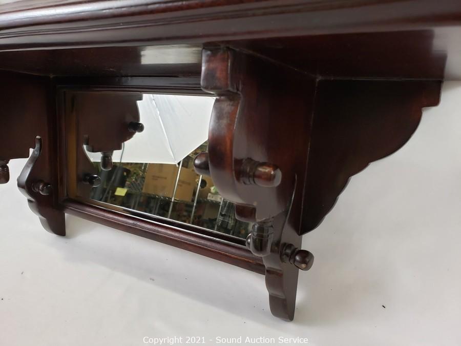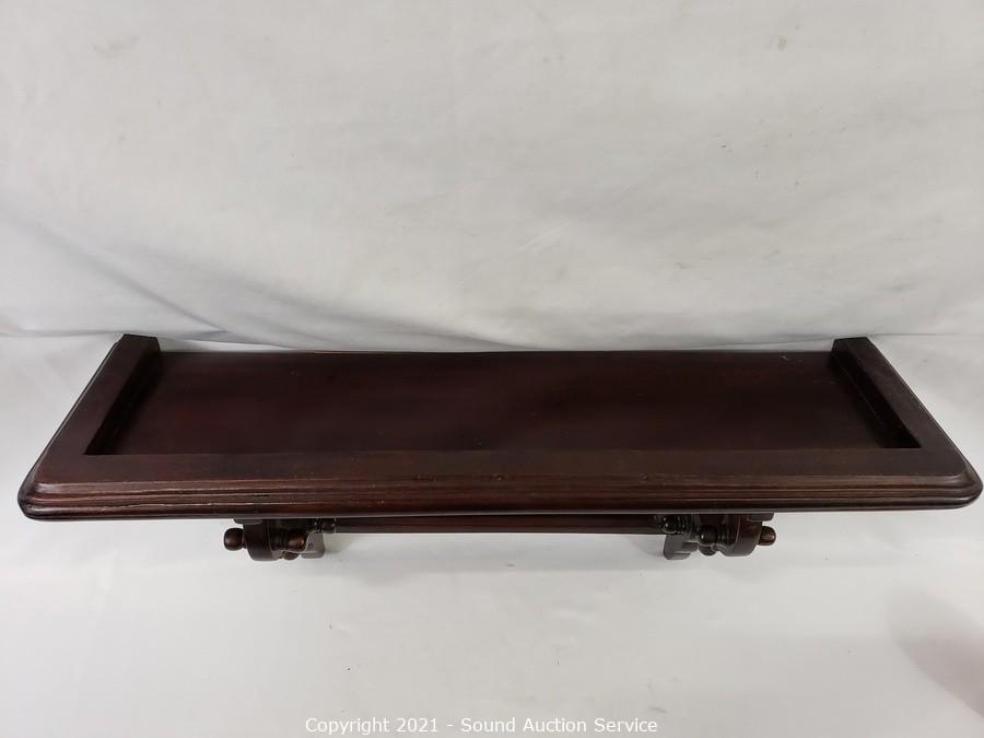 Lot #0147: Nice Dark Stained Mirrored Floating Shelf
