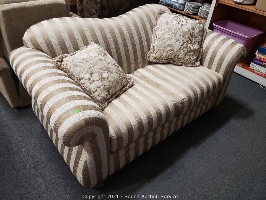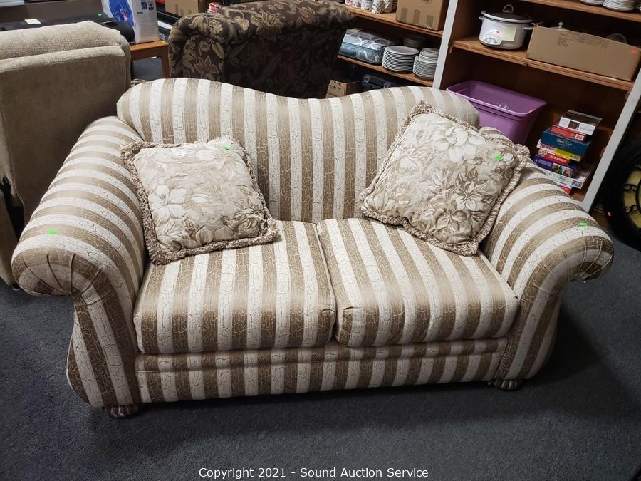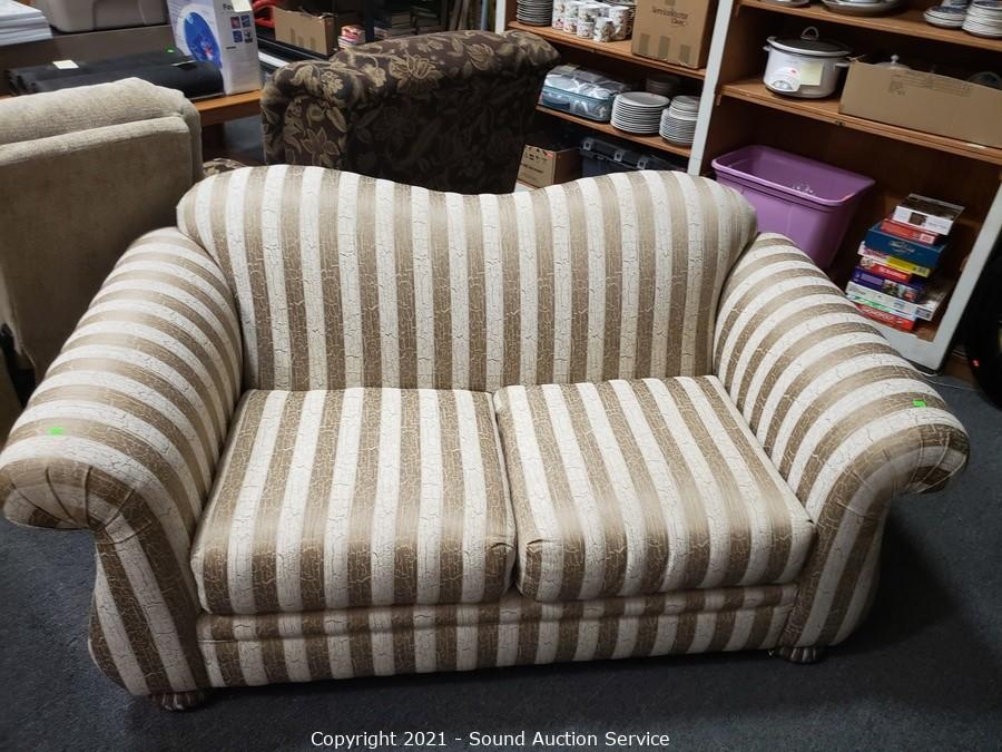 440 lots including; Nice Striped Sofa Set, Ukulele's, Banjo, Guitars, Recliners, Lawn & Garden Decor & Tools, Mid Century German Shrunk, Like New 3pc Spinner Luggage Set, MCM Modern Tufted Sofa, Area & Accent Rugs, Assorted Household Collectibles, China Sets, household & Gardening Chemicals, Like New Ladies Clothing, Uncut US Dollar Sheets, Vacuums, Kitchen Cookware, Autographed Sports Balls, Penn & Other Reels, Kitchen & Cookware, Tools, Hardware Organizers Loaded w/Hardware, Step Ladders, Hutches, Blu-Ray Movies, Sports Cards, Coins & Much More!!!