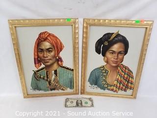 Lot #0372: 2 Original 1968 Pedro Amorsolo Portrait Paintings