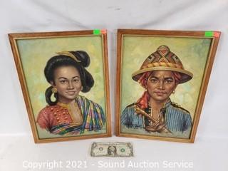 Lot #0371: 2 Original 1973 Pedro Amorsolo Portrait Paintings