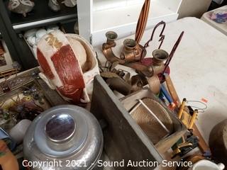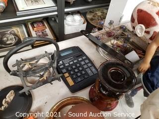 414 lots including; Bell'O 3-Tier Contemporary Media Console, Modern Elec. Fireplace Console Cabinet, Unique MCM Oak & Teak Cabinet, MCM Oak & Teak Desk w/Stool, Maple Ultra-Mek Lift Top Coffee Table, Tons of Nice Original Artwork, Disney Snow White Collectibles, Tabletop Games, Puzzles, Pepsi-Cola Collectibles, Fishing Decor, Fishing Rods & Reels, Ancient Roman Constantius Gallus Bronze Coin, K-A-Bar Combat Knife, Antique 1892 Illinois Watch Co. Pocket Watch, Breyer Horses w/Accessories, Assorted Vtg. & Antique Literature, Vtg. Cameras, Vtg. Irons, Vtg. Telephones, New Hot Wheels Diecast Vehicles, Antique Kesselring X-Ray Tube, Medical Tools, Tinker Toys, Lincoln Logs, Stereo Equipment, Speakers, Vtg. Mahogany Makeup Vanity w/Bench & Much More!!!