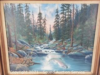 Lot #0033: Original McEnany "Fish On" Oil Painting