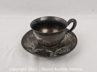 Lot Details: Small plates, goblets & etched silver plate cup & saucer.