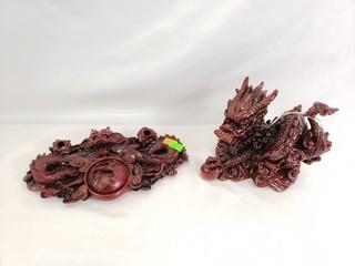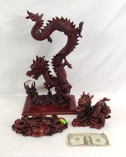 Lot #0113: 3pc Molded Chinese Dragon Decor