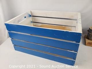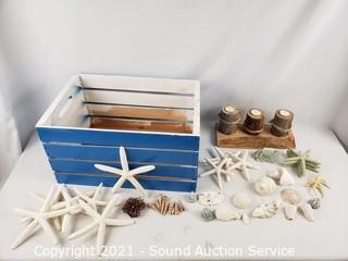 Lot #0073: Blue Wood Crate w/Beach Decor