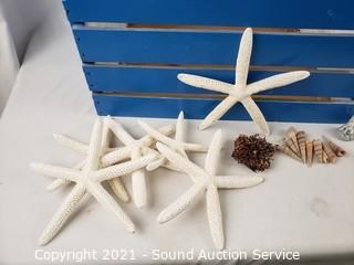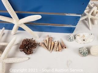 Lot Details: Starfish, shells and more. Crate is 9.5" x 12" x 18.5".