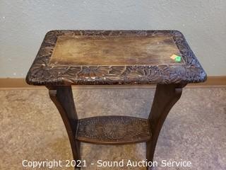 Lot #0386: Vtg. Ornate Carved Accent Table or Stool