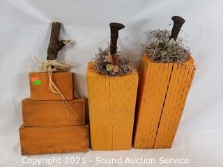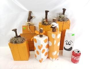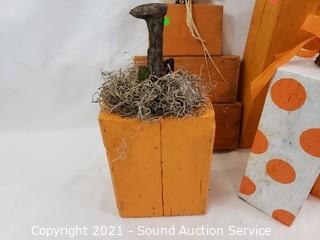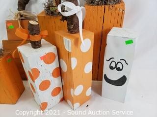 Lot #0101: Wood Block Pumpkin & Ghost Halloween Decor