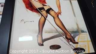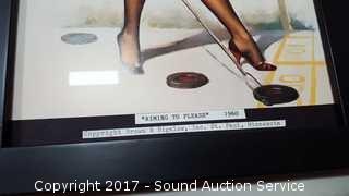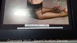 Copyright Brown & Bigelow by well known pinup artist Gil Elvgren. Comes with framing receipts. Includes: Aiming to Please 1960 Let's Eat Out 1964 Consigner paid $46.57 to have each one framed in 2009. Both come with a cutout miniature of the print. Approx. 9" x 12"
