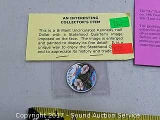 Kennedy half dollar painted in fine detail with the statehood quarters image.