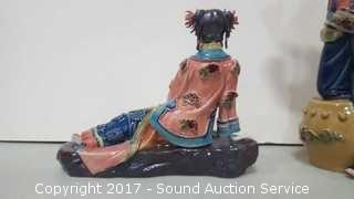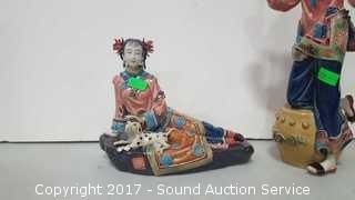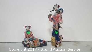 Lot #0220: Hand Crafted Chinese Girl Pottery Sculptures