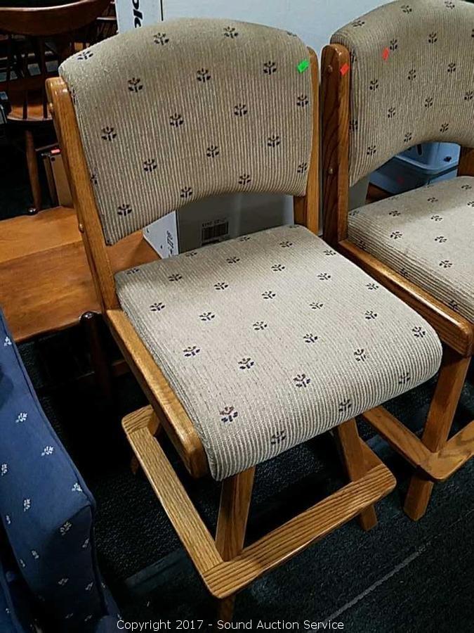 Lot #0255: Pair of Padded Swivel Oak Barstools