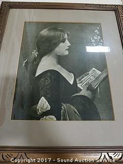 Lot #0278: Vtg. Portrait Print, Mirror & Advertisement Decor