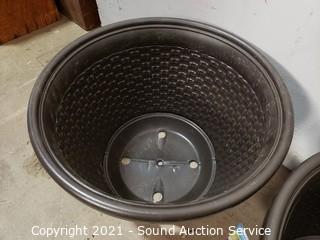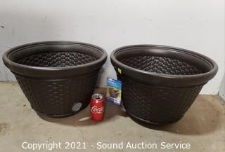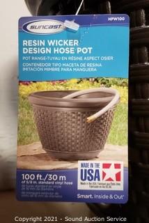 Lot #0060: 2 Suncast Resin Wicker Design Hose Pots