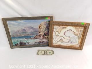 Lot Details: Impressionist titled "Dream Weaver" by Aram Larsen 10" x 12" & Seascape oil painting with artist information on the back, refer to photos, 11.5" x 15.5".