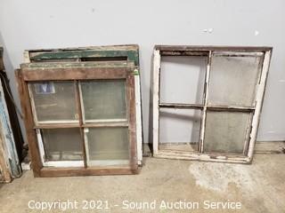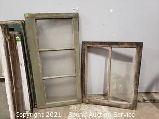 Lot Details: Some with glass, some missing some panes. Smallest 24" x 20", largest 32" x 28".