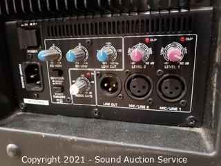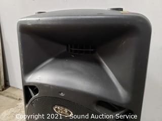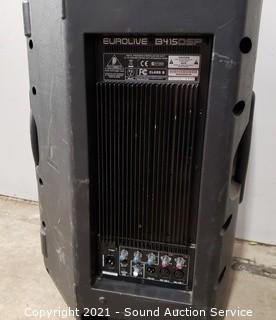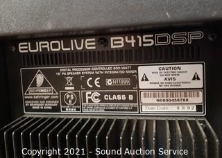 Lot Details: Digital processor controlled with integrated mixer. Eurolive B415DSP. 29" H x 18" x 17". Cone has been pushed in. Works.