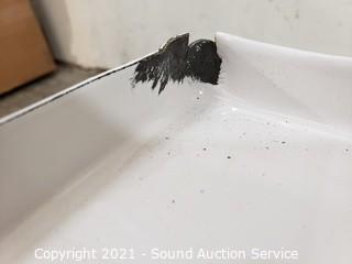 Lot Details: 60" x 30" x 16". Edge has a dent, some scuffs, chips in the finish.