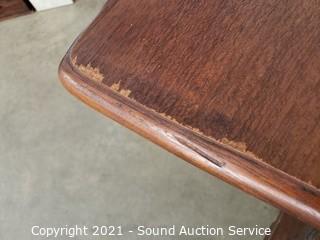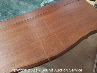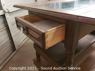 Lot Details: 3-drawers. A few minor chips, dings. 33" H x 18" x 34" w/2 11" drop leaves.