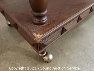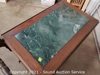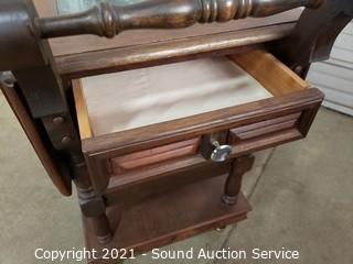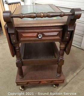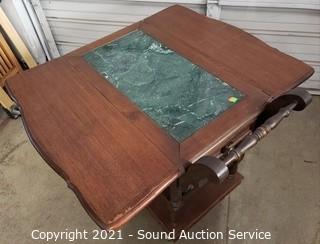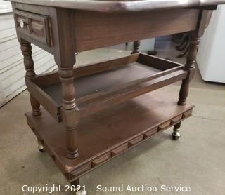 Lot #0017: Vtg. Mahogany Marble Top Drop Leaf Tea Cart