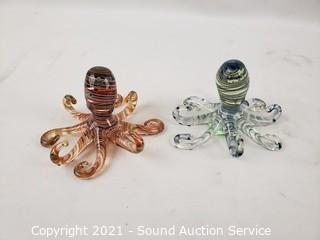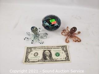 Lot #0382: 3pc Art Glass Paperweight & Octopus Figures