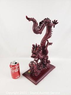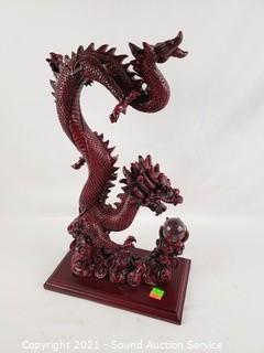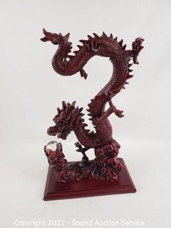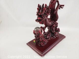 Lot #0116: Ornate Resin Dragon Statuary w/Gazing Ball