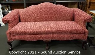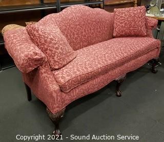 Lot #0016: Vtg. Claw Foot Sofa w/Throw Pillows