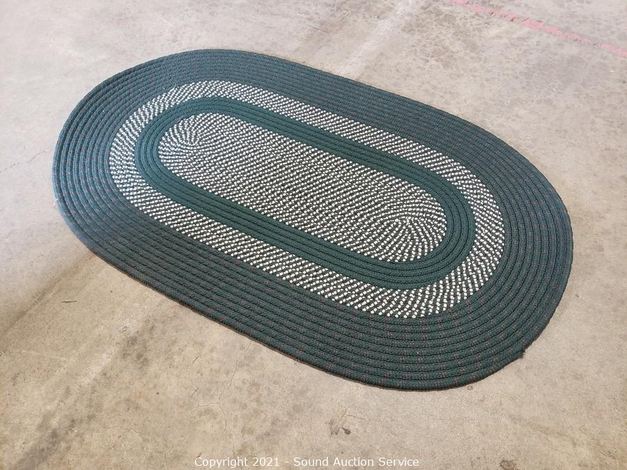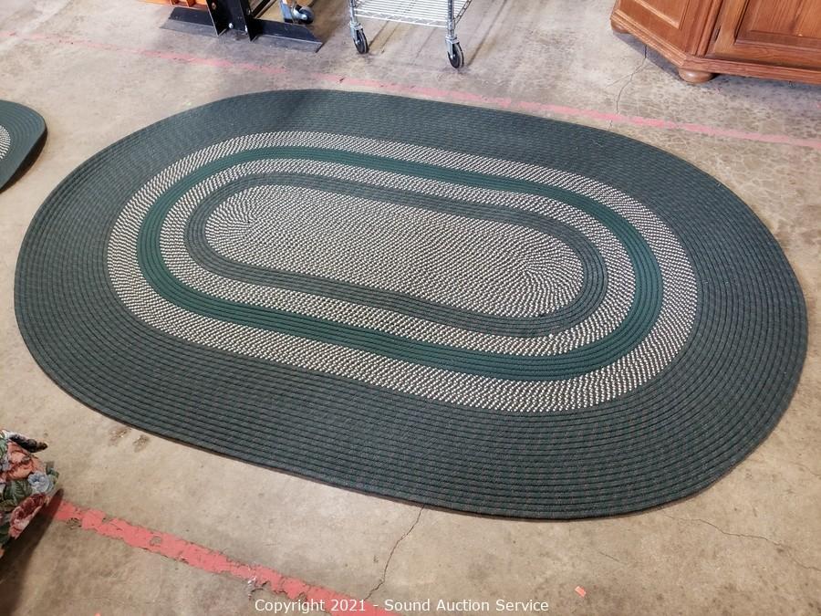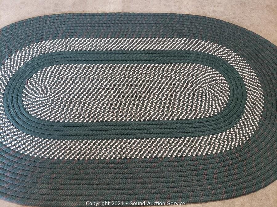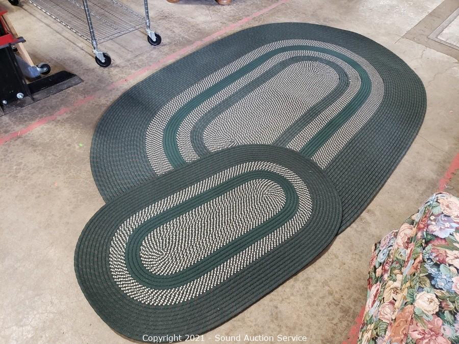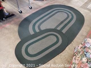 Lot #0077: 2 Nice Green/White Woven Rugs
