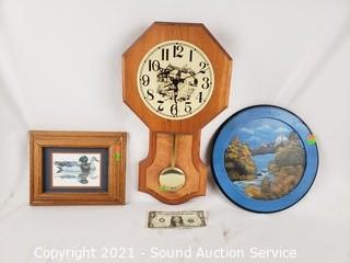 Lot #0279: 2 Quartz Clocks & Duck Print