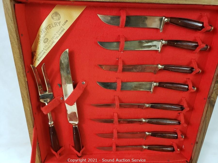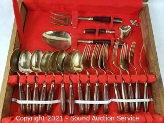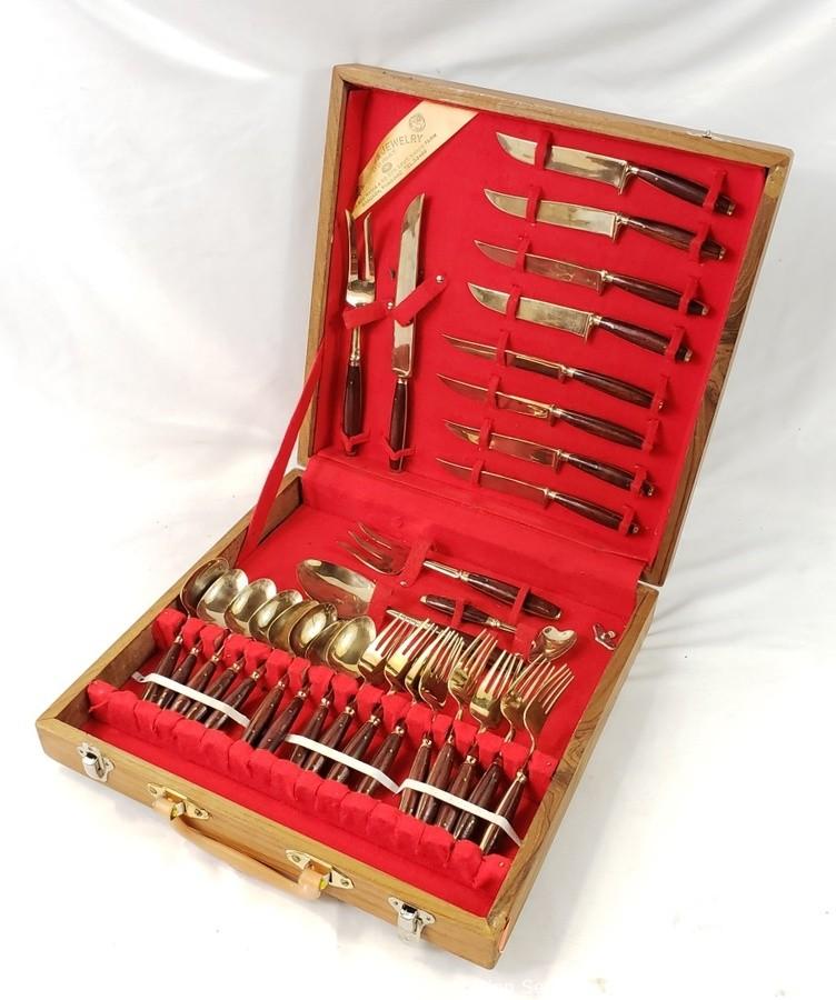 Lot #0203: 29pc Vintage Gold Tone Flatware Set w/Case