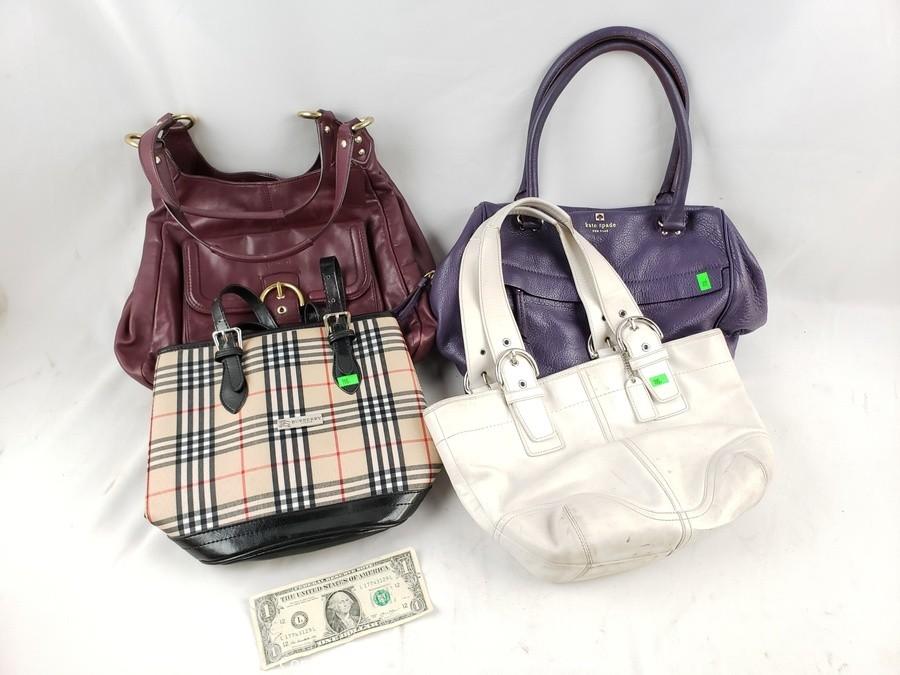 Lot Details: Burberry London, 2 Coach, & Kate Spade. 9" x 10" to 11" x 12".