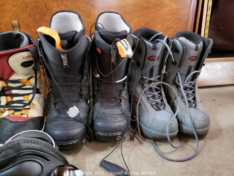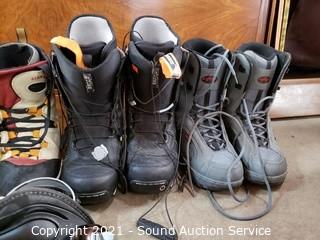 Lot #0375: 4 Pairs of Snowboard Boots & Boot Binding