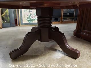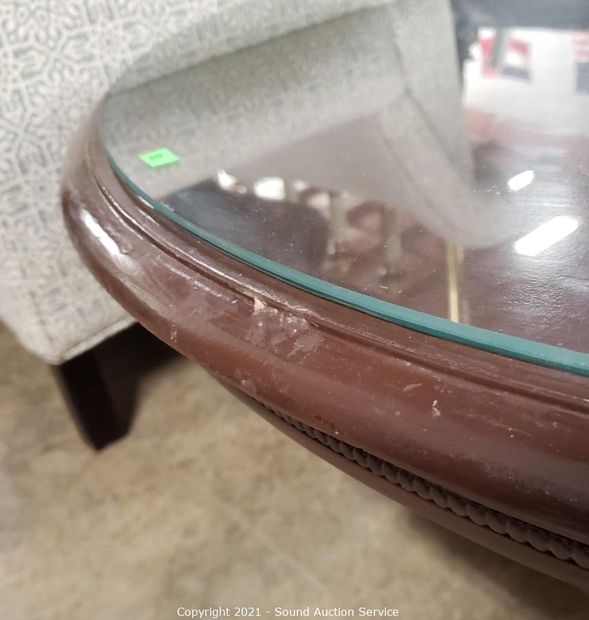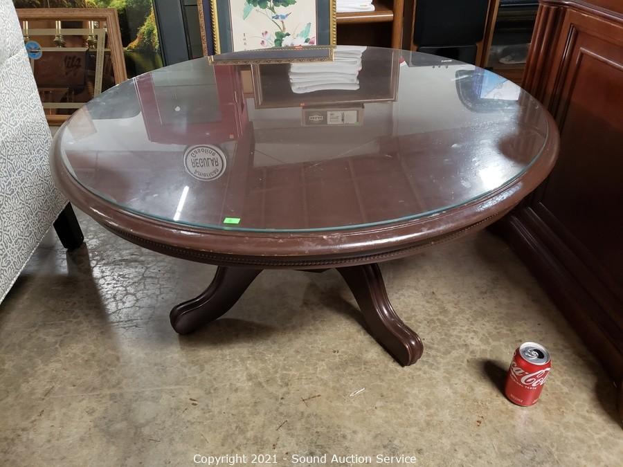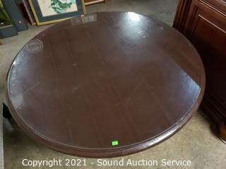 Lot #0080: Brown Painted Round Wood Table w/Glass Top