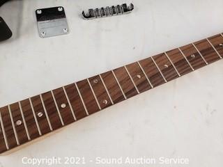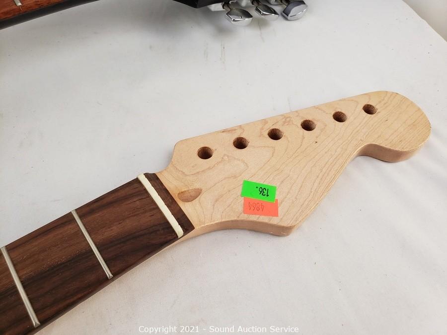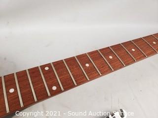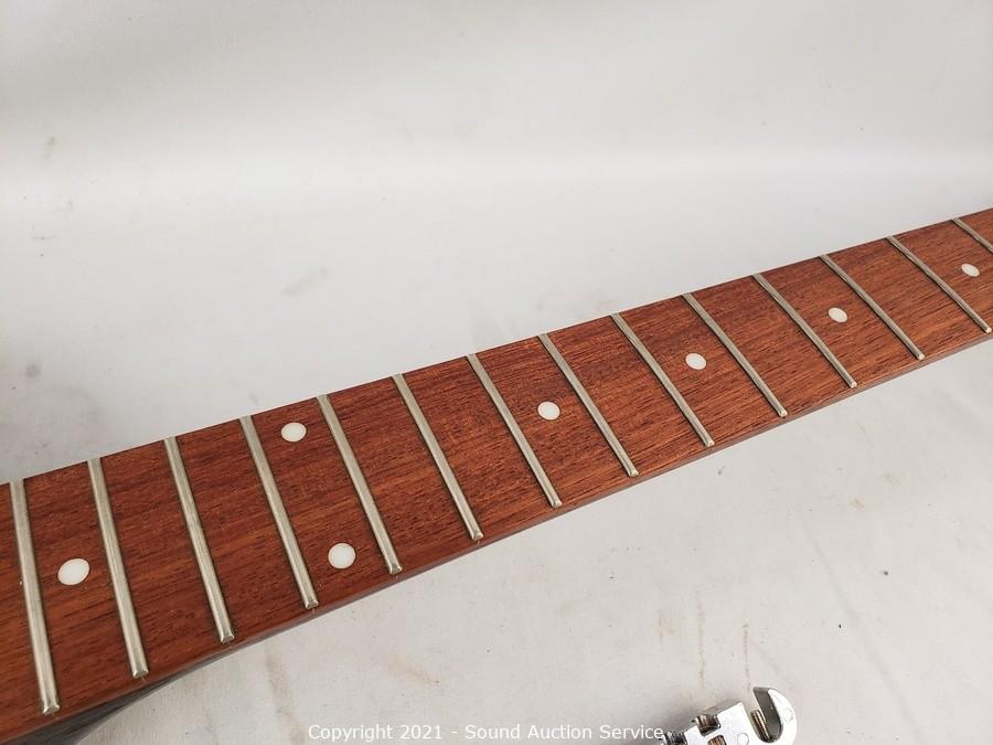 Lot Details: Guitar is untested, neck is loose, no strings. 38.5" long overall, 18" x 11.5" x 2" body. Comes with 26.5" long neck, do not see a brand.