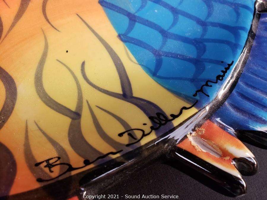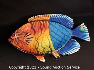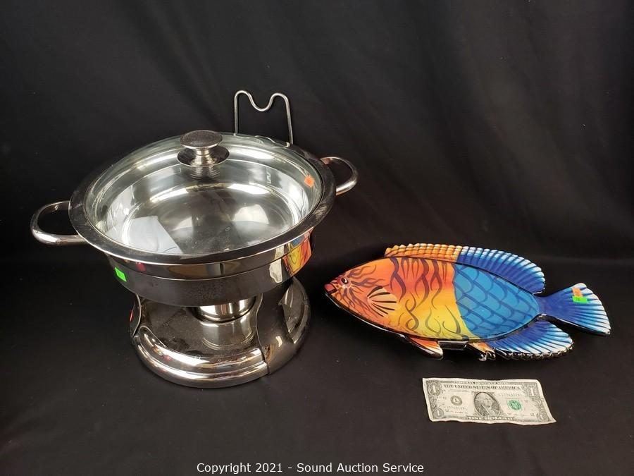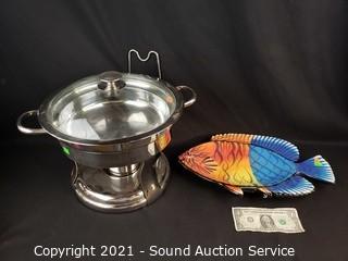 Lot #0150: Hand Painted Fish Platter & Chafing Dish