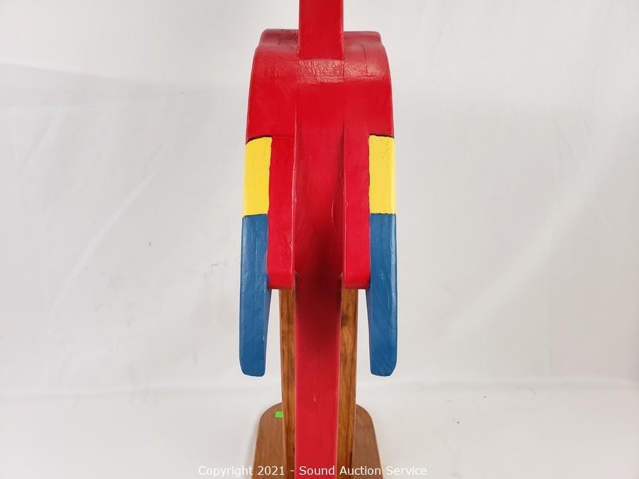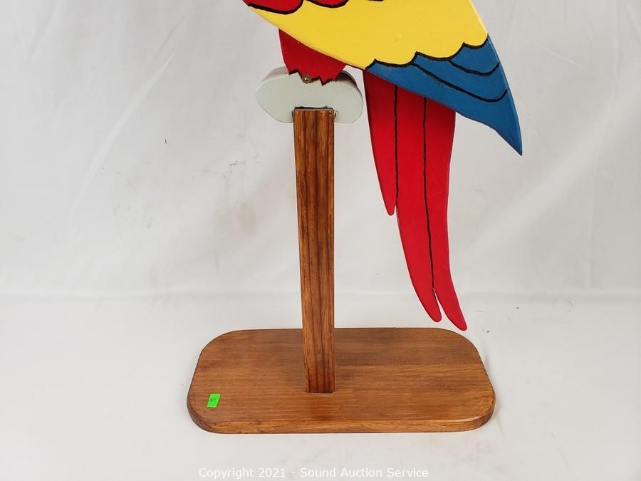 Lot #0073: Hand Painted Wood Parrot Sculpture