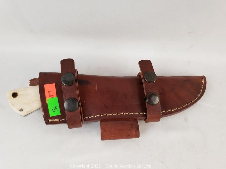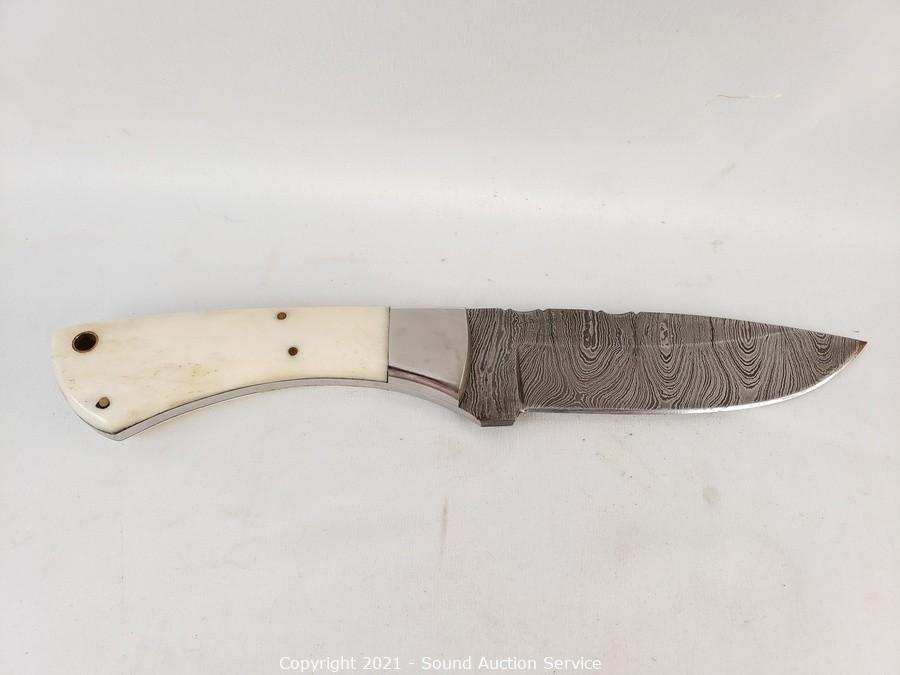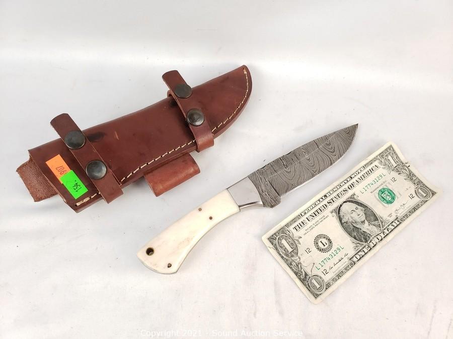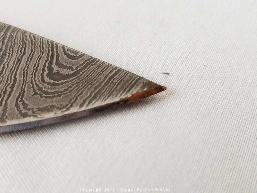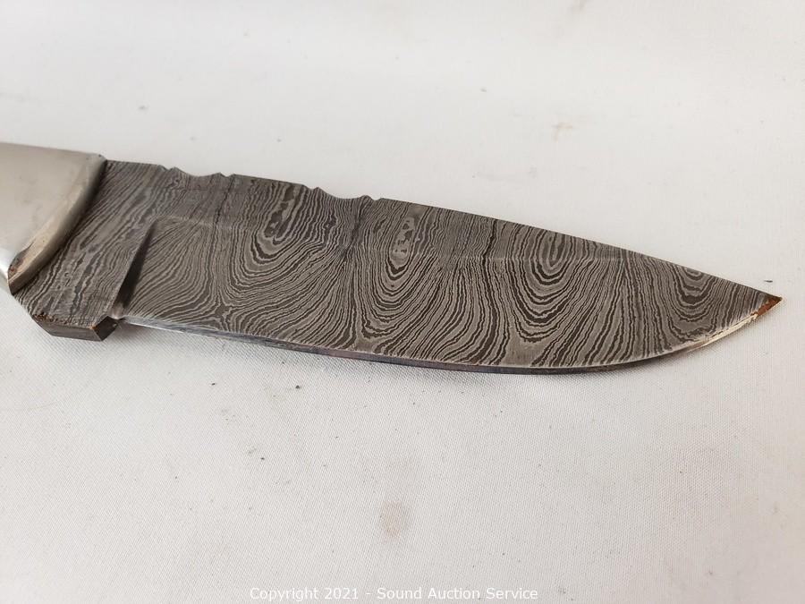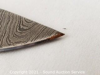 Lot #0154: Nice Hand Forged Damascus Knife w/Sheath