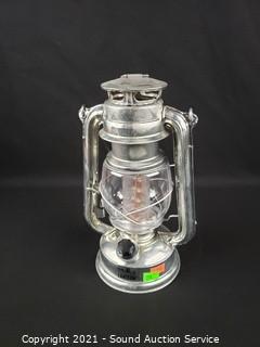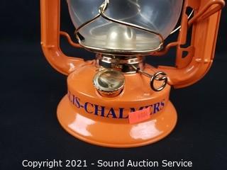 Lot Details: Olde Brooklyn Lantern is battery powered, works, 9" x 5.5". Allis-Chalmers oil lantern 12" x 6". Both in great condition.